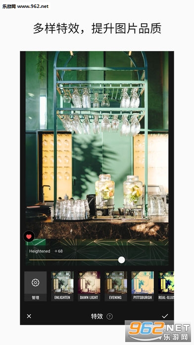 各种风格化的「特效」选择;胶片,复古,怀旧,黑白定影,光晕等经典效果应有尽有。