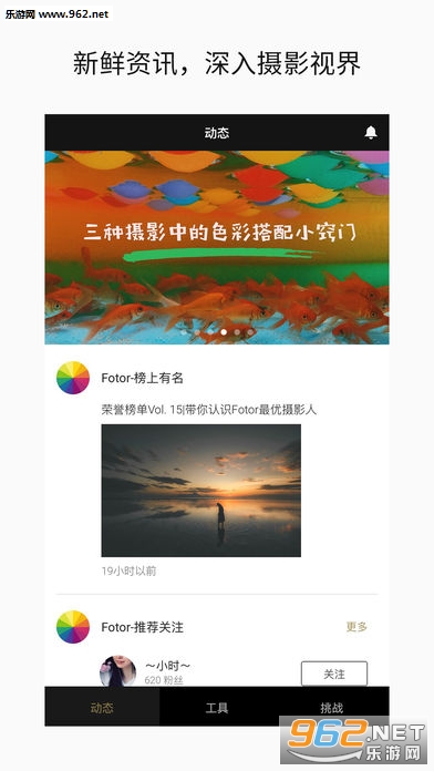 每天推荐多组美图,可以收藏喜欢的作品和关注优秀的摄影师;