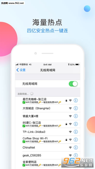 WiFi万能钥匙致力于为用户提供最好的上网服务,帮助用户最大化使用各种联网的移动服务。随时随地轻松接入无线网络,最大化使用各种联网移动服务,扫除无网断网状态,是您最佳的WiFi连接工具。