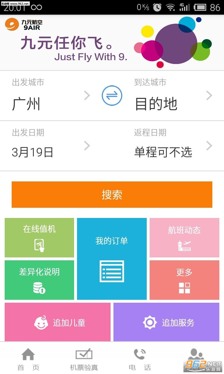九元航空移动客户端为您提供机票预定、航班动态查询、在线值机、在线选座、机票预约航旅服务。九元航空本着“实惠、活力、有格调”的理念为您提供“安全、便捷”的航空运输服务。