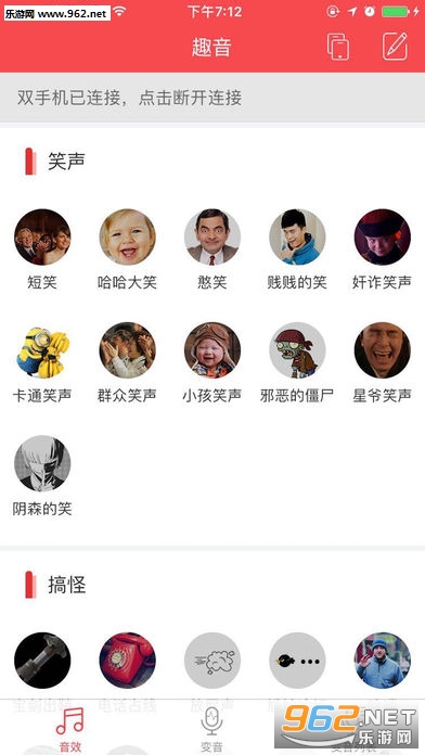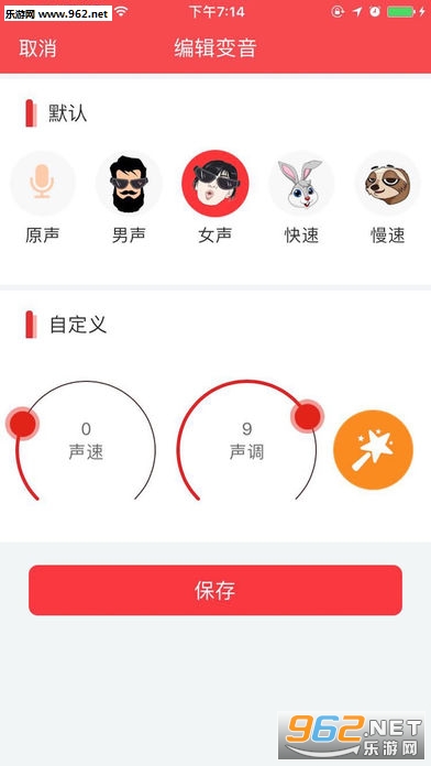 能让你的聊天变得更有趣。变声器可以改变您的声音,变成中年男人,小机械,回音机械,男,女,小孩,机器人、机械、汤姆猫、巨人、怪物、等声音。您可以保存下来或者分享给好友、等。