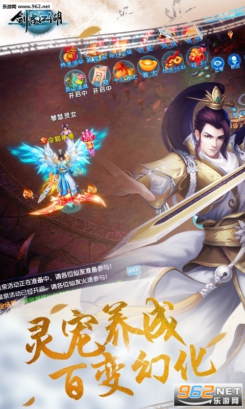 2、御剑飞行俯瞰神州大地,独特双修玩法,上古神兽来袭;