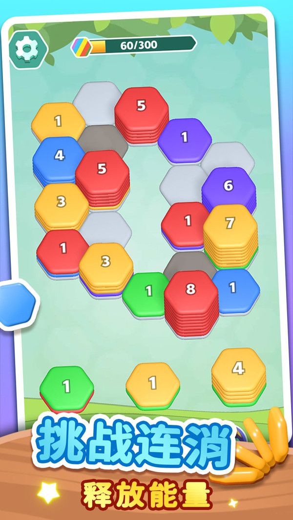六边形叠叠消是一款有趣的休闲益智游戏,经典的消除游戏玩法可以体验,独特的六边形棋盘为主,轻松愉快的氛围挑战性十分的强大,通过简单的操作经济,能够连贯消除各种好玩的任务,解锁多种关卡皮肤,来这里一些列的合理规划感受玩法乐趣,有兴趣的玩家可以来试试吧!