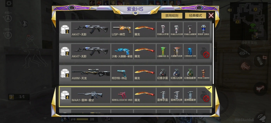 AK47-雷霆王者-冰霜奇迹、QBZ191-金甲虎啸觉醒-千变、擎天觉醒-现代金属、M4A1-雷神-RGB骇客、M4A1-黑骑士-白马银枪、王者之兽-冰霜奇迹等