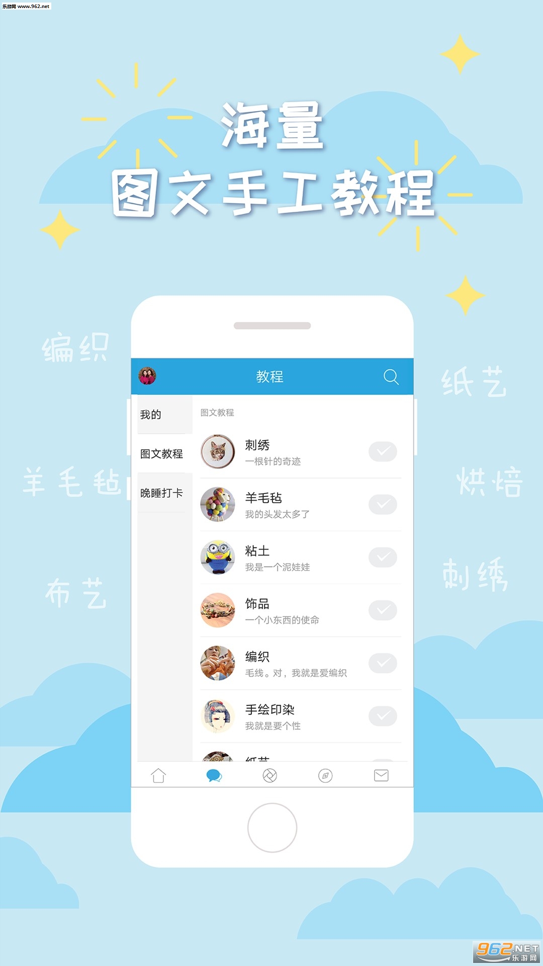 手作堂app是一款手工学习分享平台。【100位手工创意大师每天教你学手工】我用手工爱上生活,造就自然之美。0基础学手工,让每件出自你手的物件都有温度。(布艺、皮艺、编织、黏土陶艺、饰品、刺绣、橡皮章、木艺、羊毛毡、纸艺....)
