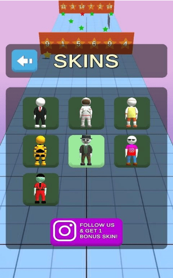 2.精致的皮肤造型可以进行切换,用你的比赛奖金来购买,每次都能选不同的角色来奔跑。