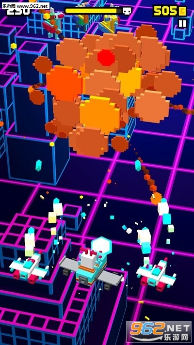 《天空射击大战 Shooty Skies》是一款互联网3D像素飞行游戏。还记得天天过马路带给你的乐趣吗?如今在《天空射击大战 Shooty Skies》中你将经历更为紧张刺激的大战!我们驾驶的空中战机只需触屏便可发射子弹,而且放着不动会自动蓄力,待你点击后即可射出无数的导弹哟!不过天空中到处都是奇形怪状的敌人,小心避开它们的攻击吧!