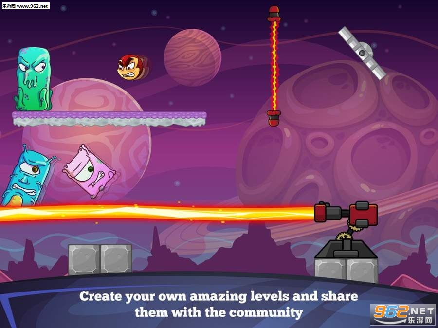 目前比较简单好玩的休闲游戏,有点可惜的是没有中文的,在游戏中需要利用物理知识来控制小球弹射摧毁怪物,支持自定义关卡,总之真的超级好玩啊!!!