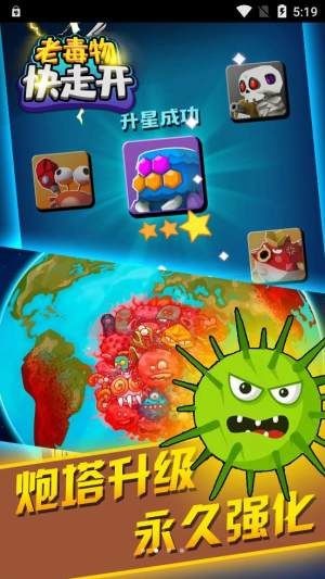 3、激爽的射击对抗旅程,不断的利用最强大的炮弹击溃毒物,获取最强大的新炮塔武器。