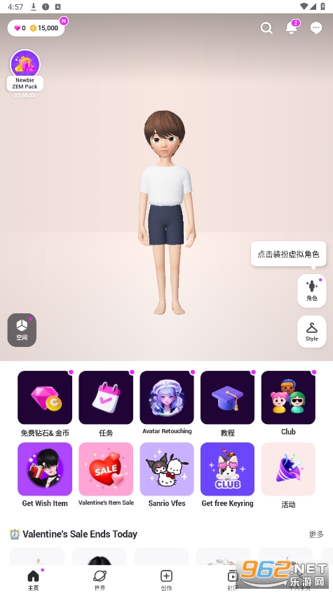 打开zepeto,在首页中点击角色