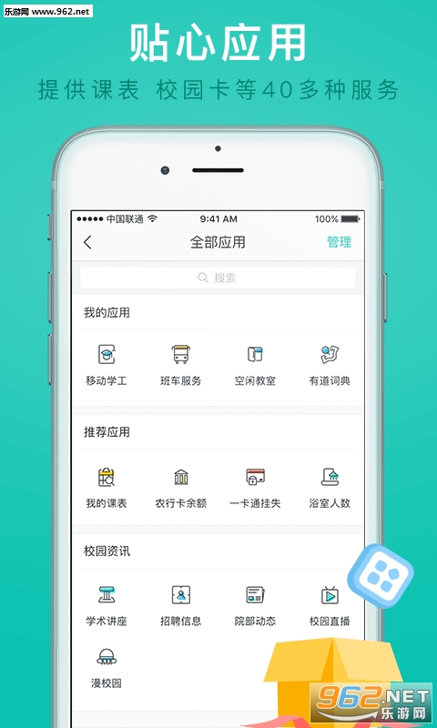 30余种实用校内应用,涵盖学工应用、教务信息、生活服务、学习工具等方面