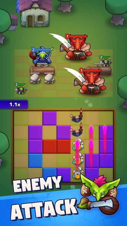 2、观察敌人弱点,针对性融合克制方块,提高战斗效率。