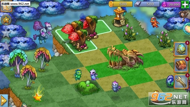 匹配蛋,孵化有用的巨龙,它们会在山谷中漫步,采集物体供你使用或匹配。