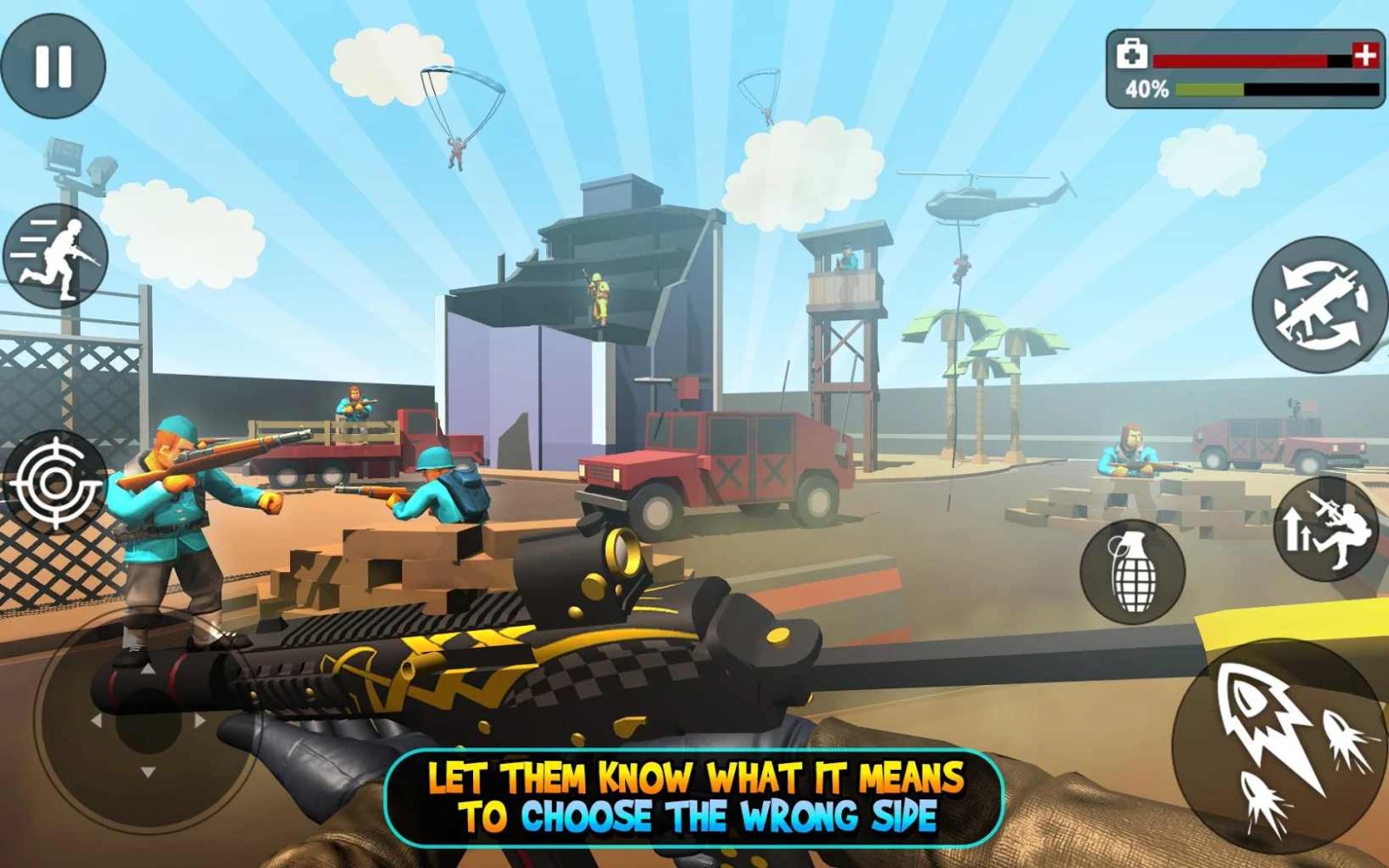 1、这是一款十分好玩的枪战游戏,游戏中玩家需要准备武器进行战斗.