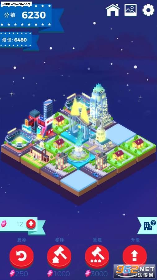 2048玩法不必多说了,有看广告续命的机制。和形象化的合成消除,是美国的建筑。中规中矩的同类玩法,多一星给美术、背景音和收集系统,一个小游戏也设计了昼夜系统,景色天气随时变化,益智玩起来也挺赏心悦目的。