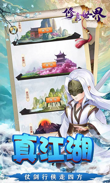 想体验沉浸式武侠世界吗?看腻了千篇一律的“猛 男”画风?福利太少玩不下去?不用担心,统统不是问题!时间太少不想肝? 放置挂机轻松休闲不用肝!Q萌休闲武侠卡牌RPG游戏《修真世界》强势来袭!登录送100抽,福利狂送不停!Q版画风多变场景超炫的战斗!还少侠,你还在等什么,快上马吧。有花样玩法带你体验原汁原味的武侠世界!