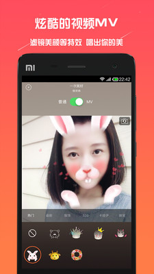 炫酷的MV模式:超多款不同风格的专业胶片级滤镜,全屏幕实时滤镜连拍取景,一键美颜,录制个性MV,让你的音乐秀色可餐。