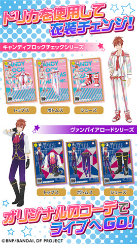 《梦之祭!》是一款和2次元5位男性偶像一起,联动实际声优2.5次元的新IP计划。会进行游戏·CD·周边·MV·现实LIVE等等的多媒体活动,在其中,应援偶像需要的道具“梦之祭!卡牌”。现在万代正在发售梦之祭!卡牌,读取记载在卡牌的上的二次元码后,在应用上登录服装,能够改变偶像的衣服。