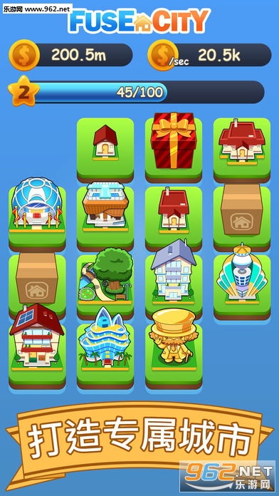 《融合都市Fuse City官方版》是一款画风清新可爱的卡通休闲放置点击游戏,玩家需要通过合并小屋,不断升级出更高级的建筑,各种公寓酒店公园等,有趣的融合玩法和经营乐趣,从商店购买建筑扩展你的小镇,另类的模拟经营玩法,赚取更多的金币不断升级,向着大都市不断努力吧!
