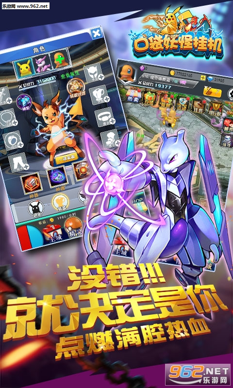 熟悉的小精灵、经典的场景,唤醒你童年的欢乐和热血。《口袋精灵挂机版》高度还原精灵世界,多达数百只小精灵,从三圣鸟、超梦到梦幻,原著精灵集体出场,打造小精灵明星阵容!小智、小霞、小遥,童年的伙伴再次聚集,将展开一场穿越20年的口袋妖怪之旅。