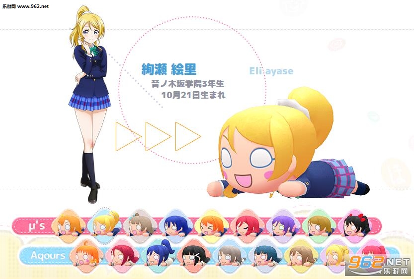 Aqours全员化身可爱的小趴趴玩偶,展开爽快的消除游戏!《LoveLive!》系列人气曲目大量收录!