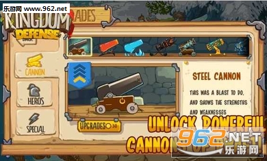 开始闯关前升级和装备大炮和英雄。