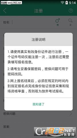 (2)请考生务必牢记注册时设置的“密保问题”与“密保答案”,这两项信息是登录密码丢失后考生自行找回密码的重要验证项。