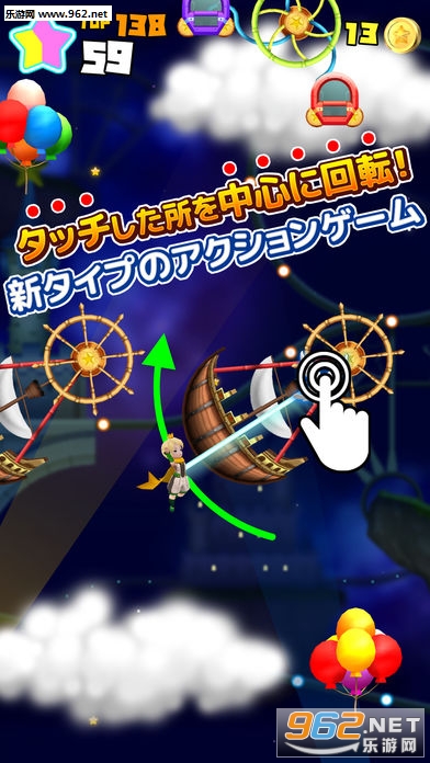 游戏中,玩家要控制主角星之公主,透过点击屏幕,来构成一个顺或逆时针的圆型轨道,公主会以点击的地方作为圆心,环绕圆心作移动。利用这个移动机制来回避障碍物,以及获得物品。
