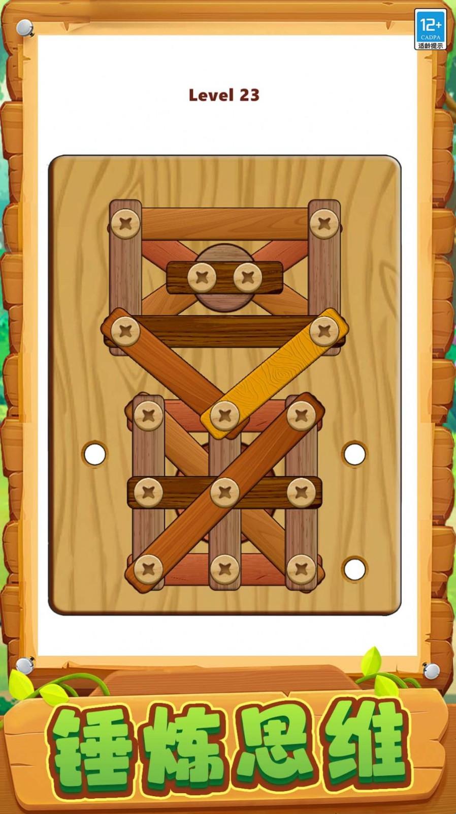 钉了个钉是一款益智解压游戏,玩家需要通过移动钉子来移除木棍,解除所有木棍才能取得胜利,还有丰富的关卡等你体验,每个关卡都有不同的挑战和难度,大大增加了游戏的可玩性,让你可以在这里玩得过瘾,游戏操作简单易上手,适合各个年龄段玩家,喜欢的小伙伴快来下载吧。
