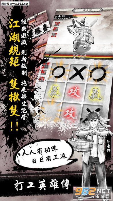 战斗系统改良经典小游戏井字过三关,丰富其策略性,对弈时要谨慎取舍攻击或防守,事前亦是配搭好武功及内功,依靠机智取胜!