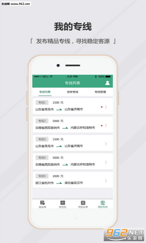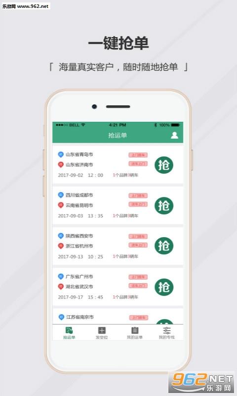 九州运车物流端APP是一款为全国物流公司提供汽车托运接单服务的专业软件,主要用于物流公司承接发车订单及发布板车空位;作为全国较大的在线轿车托运平台,九州运车为物流公司提供大量真实有效的运车需求,让板车司机和物流公司承运不再难,随时随地可以接单运车,增加利润的同时,大大降低板车的空载率。