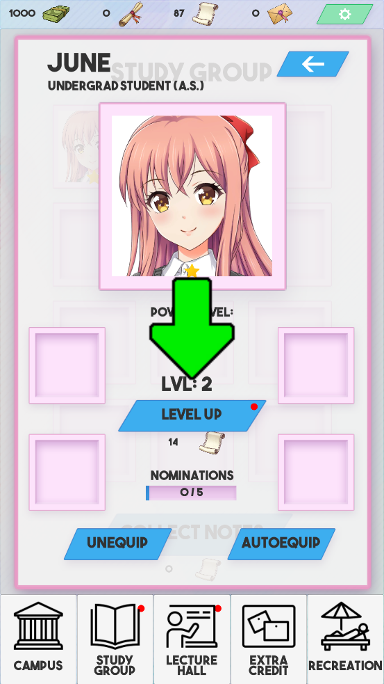 您刚刚被美国最负盛名的大学之一录取!作为空闲大学的新生,您想为自己出名,但您无法独自完成!招募学生加入您的行列,带领您的学习小组取得学术成就!