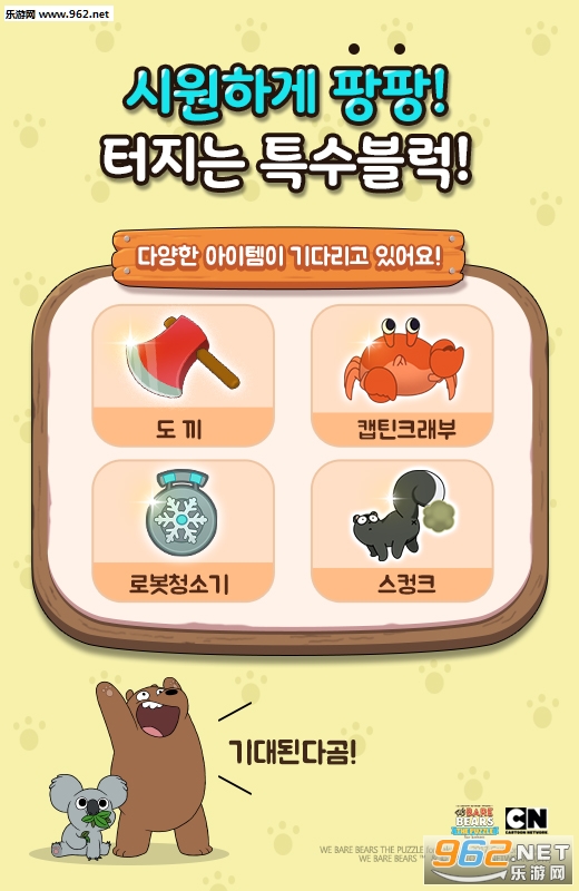 熊熊遇见你游戏是一款消除类休闲游戏,改编自知名动画片《咱们裸熊》,这已经不是咱们裸熊系列第一次被改编成游戏,这次将将沿袭动画的人物形象以及故事,并且加入全新的消除玩法。