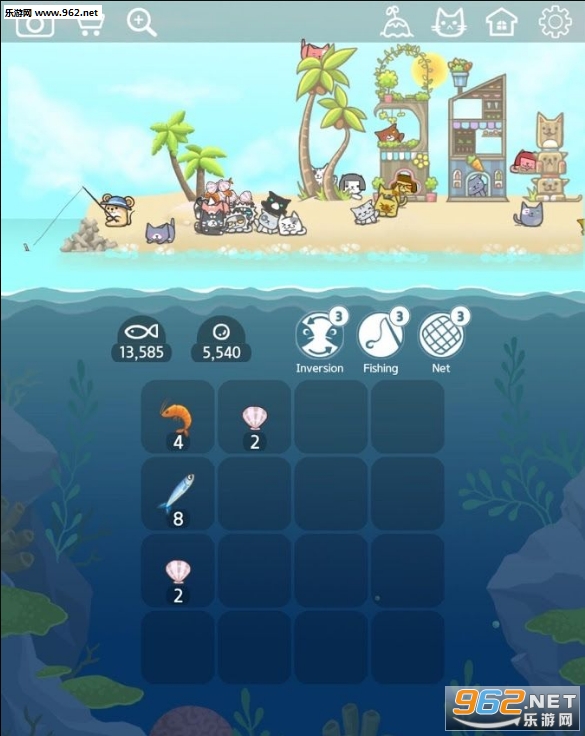 捕上来的鱼儿可用来扩岛或修建建筑,领养猫咪;