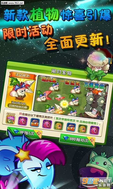 《植物大战僵尸2 v2.23版本》是一款植物僵尸对战策略塔防类游戏,游戏玩法非常的经典,玩需要不断的种植植物,利用不同植物的技能,来抵御入侵的僵尸,玩法简单,但是非常有策略性,植物大战僵尸2 v2.23版本新增了爆炸坚果装扮大招,新的植物和双旦相关的活动,先要玩的小伙伴快来下载吧!