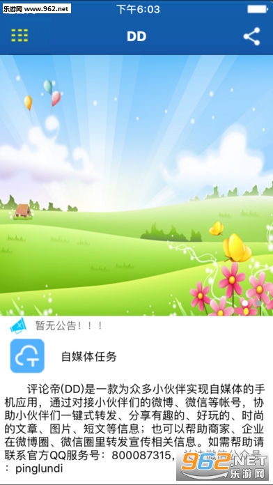 《评论帝》(DD)是一款为众多小伙伴实现自媒体的手机应用,通过对接小伙伴们的、等帐号,协助小伙伴们一键式转发、分享有趣的、好玩的、时尚的文章、图片、短文等信息;也可以帮助商家、企业在圈、圈里转发宣传相关信息。