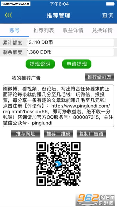 《评论帝》(DD)是一款为众多小伙伴实现自媒体的手机应用,评论帝app通过对接小伙伴们的、等帐号,协助小伙伴们一键式转发、分享有趣的、好玩的、时尚的文章、图片、短文等信息。当然,你还可以通过这个应用赚钱哦,完全任务,现金奖励!