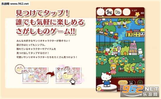 本作是由Edia 联同Sanriowave 合作开发的手机游戏,玩家要在每一关眼花撩乱的背景中,找回指定的角色。登场的角色除了有吉蒂猫外,也少不了同是来自Sanrio 的布甸狗和XO 酷企鹅一行人。儿时或有看过美国图书《Wheres Wally》的玩家会不会有所悸动呢?