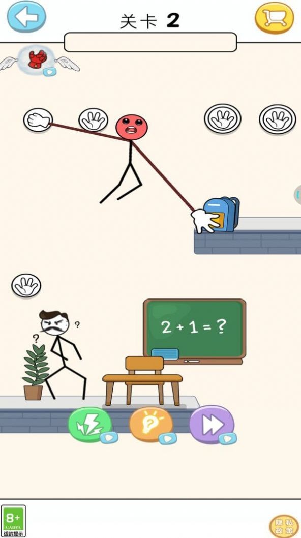 2、采用精美的画面和音效,营造出一个趣味的火柴人脑洞世界。