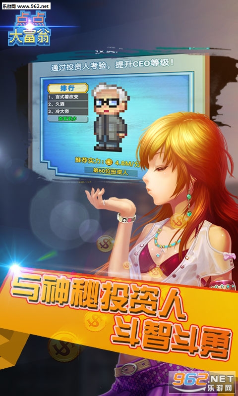 经典的像素风放置经营游戏《点点大富翁》正式上线!经典的模拟经营策略游戏,数十个能力各异的手下等待你的招募,丰富的公司外观,等待你的开启,马上进入点点大富翁的世界,打造最强公司,与其他玩家一较高下!