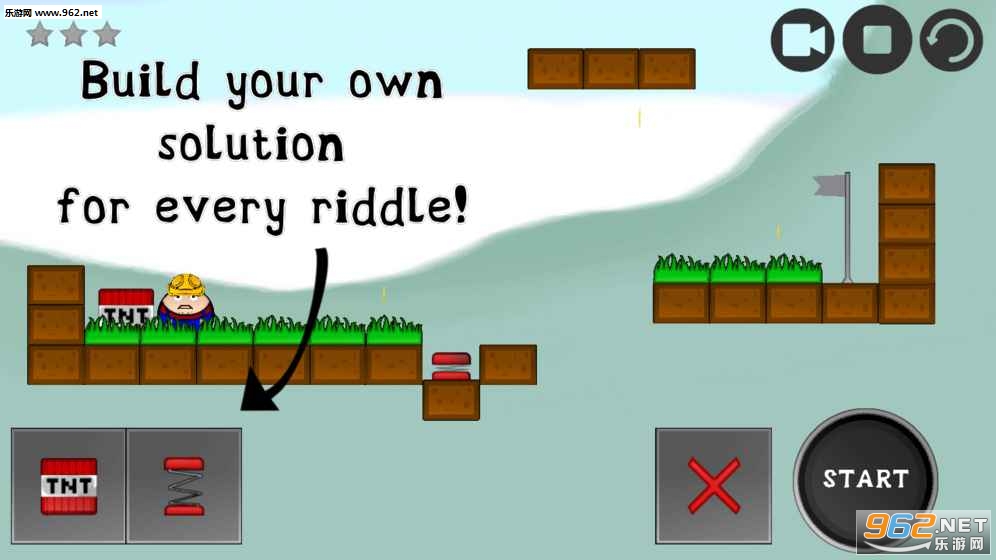 2、游戏玩法简单,只需要把TNT炸弹和弹簧通过点击就能放在指定的位置;