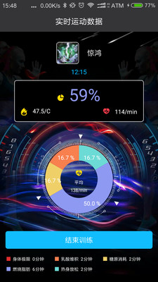通过医学级心率智能穿戴设备记录用户心率、卡路里消耗、最大心率比等数据,通过大屏或手机端进行实时展示。互动、直观的界面,有效的帮助用户把握运动状态,避免运动伤害,规避运动强度不达标。。