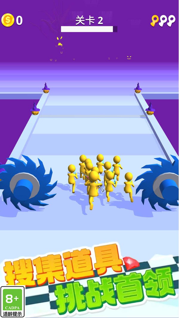 1、在关卡中奔跑,尽可能躲避障碍物和敌人的攻击;