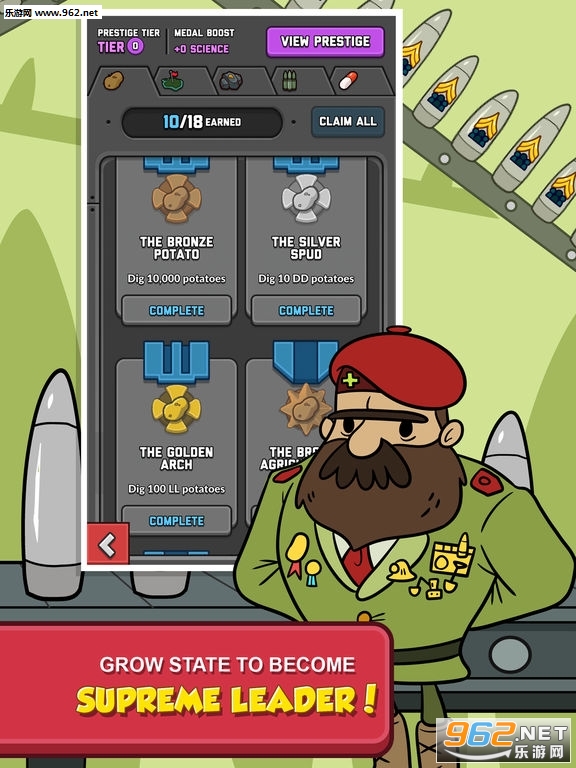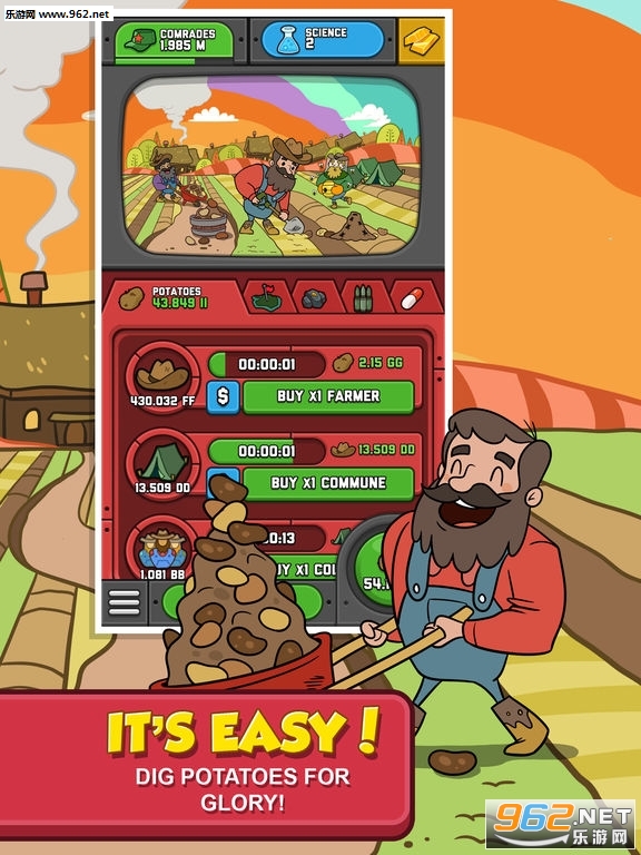 成为你自己的共产主义国家的光荣领袖,收集资源,建造最终超强动力。挖土豆,科研实验的升级,并进行高效的所有生产资料,提高到最高级别。