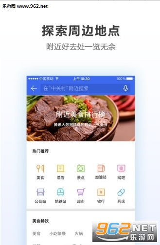 腾讯地图体积小,响应快,并能精确区分主辅路、室内室外以及高架桥等特殊路段和地标建筑,更植入了2000多套室内地图,覆盖了各大机场、火车站和主流商场,即使在室内也不会迷路。可支持国内200多个城市的实时路况刷新,能通过界面优化让附近吃喝玩乐的好去处一览无余,让生活更高效。