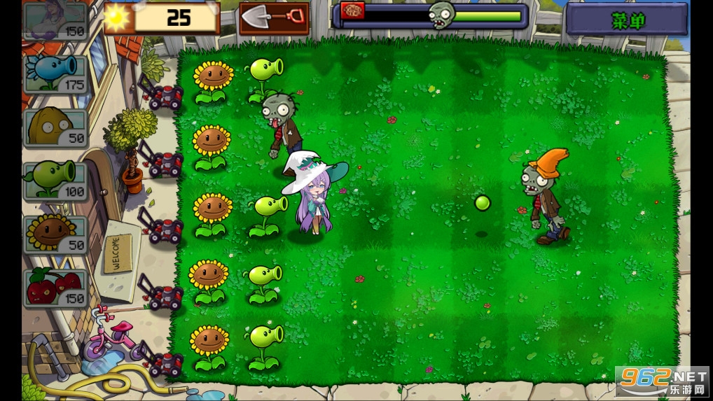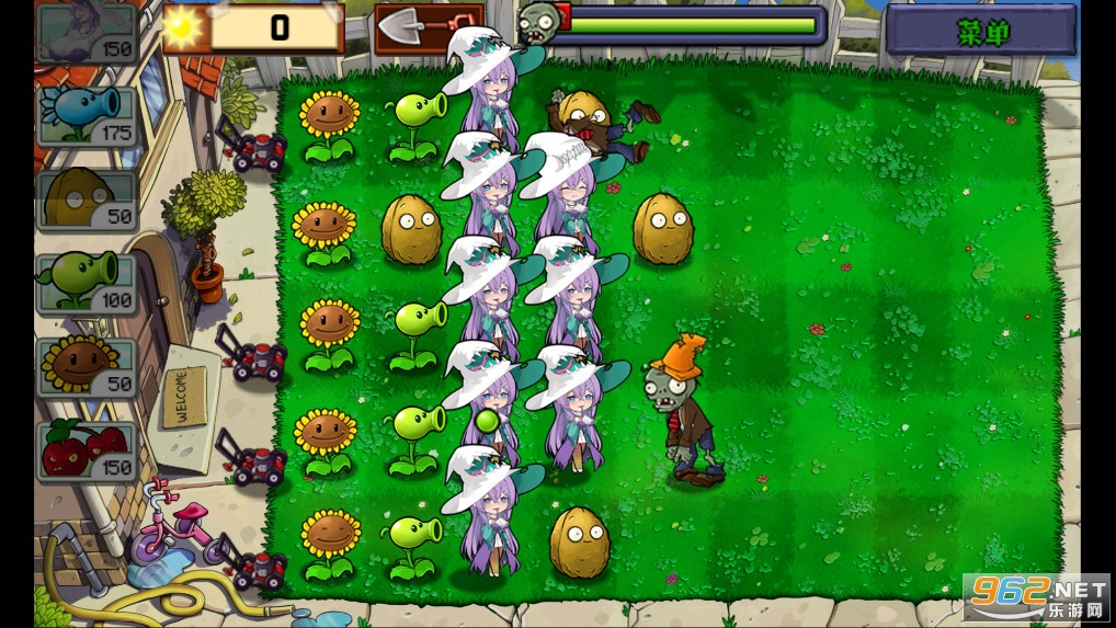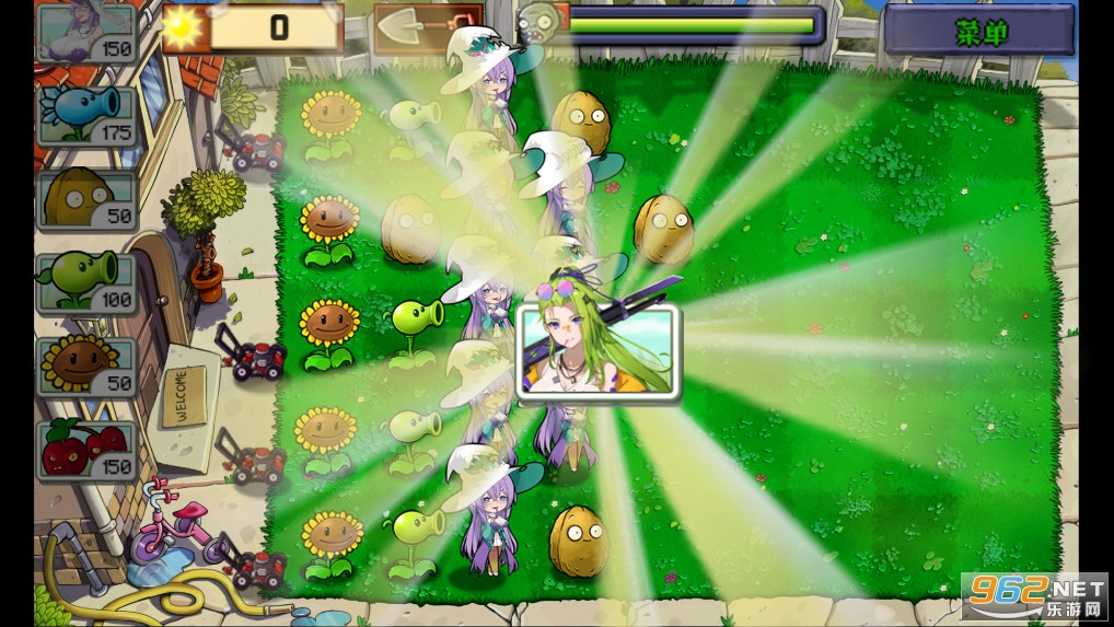 该版本为B站UP主庄不纯制作的PVZ一代改版同人游戏,将植物大战僵尸中的植物形象进行娘化。