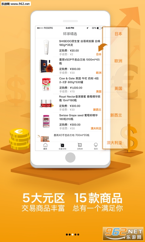 3、5大元区,15款商品,品类丰富,交易多元化;