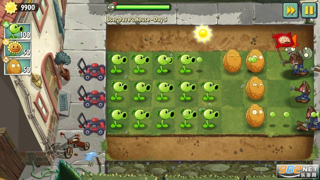 2、花苑是最终的竞技场,充分发挥绿色植物特性去处理丧尸。