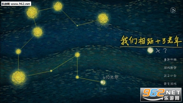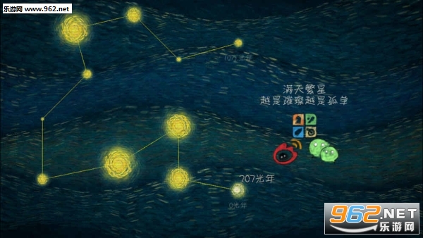 《我们相聚十万光年安卓版》是一款画风独特的休闲娱乐手游,游戏的画面给人的第一印象便是致敬梵高,非常具有抽象的艺术气息。玩家们需要控制一颗星星进行飞行冒险,星星的飞行需要不断消耗能量,因此玩家需要维持能量吸收与消耗之间的平衡。操作简单但非常耐玩,感兴趣的玩家可以来试试~