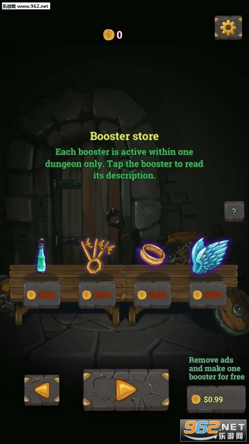 你有9张牌,代表你勇敢的英雄,你向左或向右移动,或向上或向下移动。英雄要穿越地牢,打开箱子,喝灵丹妙药,收集硬币,扔火球,避免尖刺的陷阱,打败boss。进入排行榜!